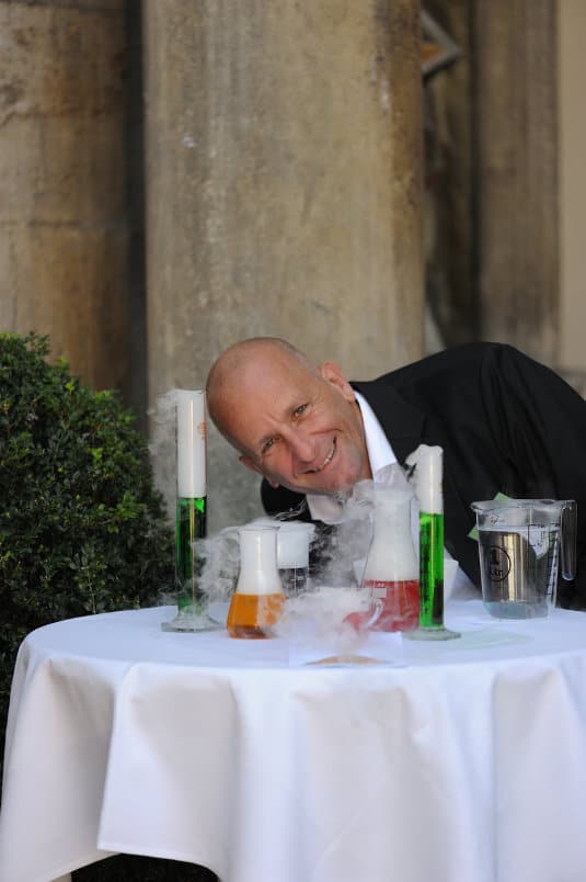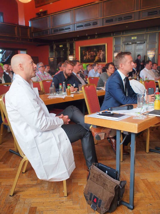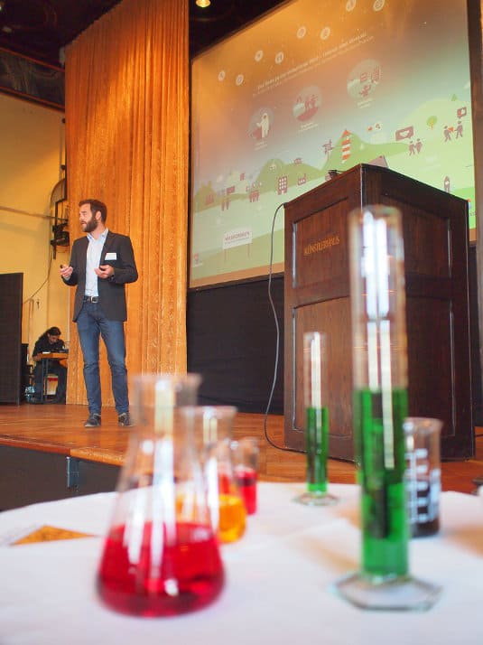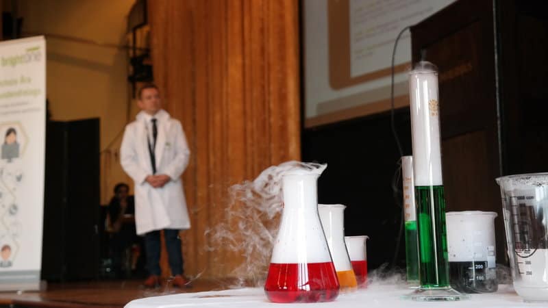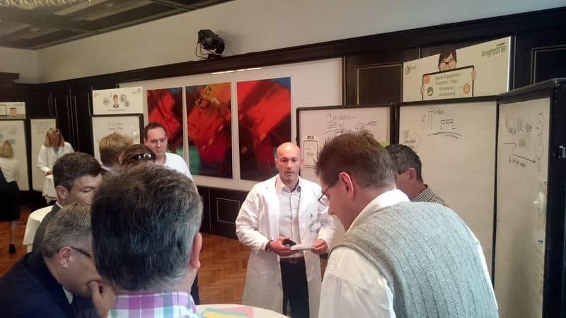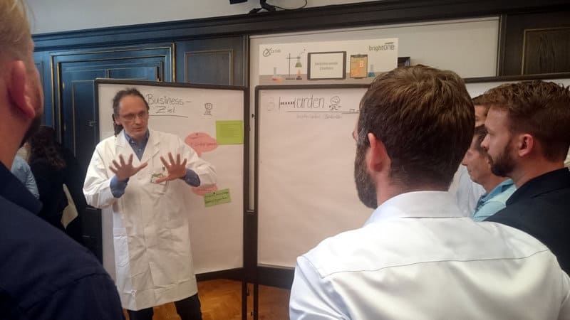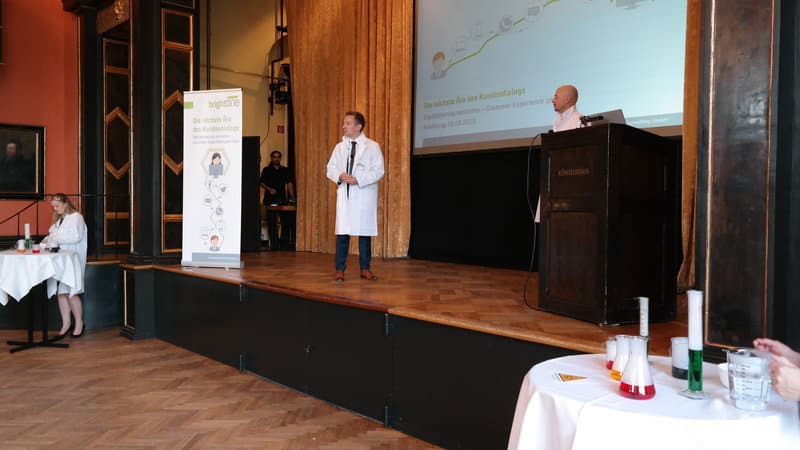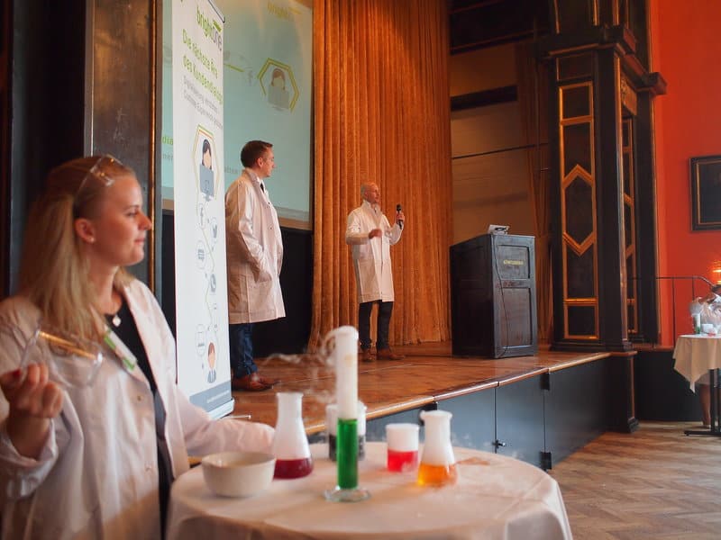 Es brodelte und blubberte. Geschäftiges Treiben der Labor-Assistenten – vor und hinter der Bühne. brightONE CX-Kundentag 2016!