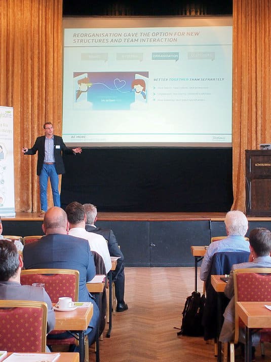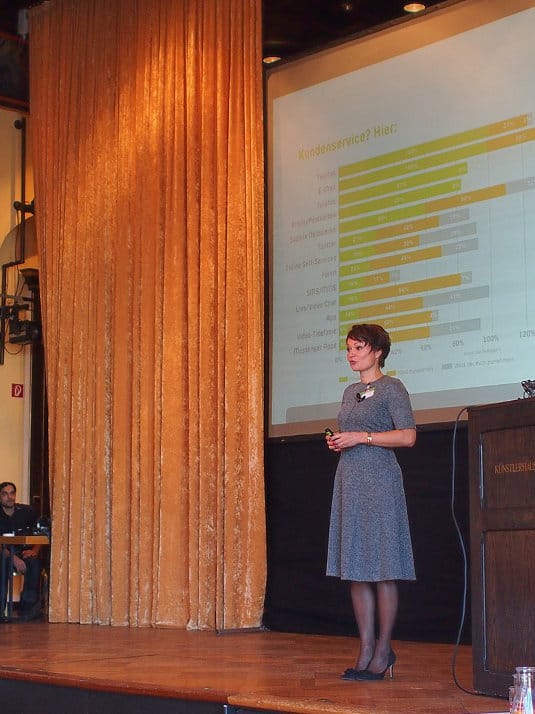 Dieter Roth, Geschäftsführer COMBITEL Gesellschaft für Dialogmarketing mbH, zeigte auf, wie das Zusammenspiel zwischen First und Second Level im Kundenservice verbessert werden kann: mithilfe von internem Social Customer Service! Wie erfahre ich als Mitarbeiter, welcher Kollege wirklich alle notwendigen Fähigkeiten mitbringt, eine sehr spezifische Kundenfrage zu beantworten – und verfügbar ist? Mithilfe eines internen Mitarbeiterportals falle das leichter. Roth machte es anhand der Frage zu einer “Pferdehaftpflichversicherung”, also einem sehr speziellen Fachgebiet, deutlich.