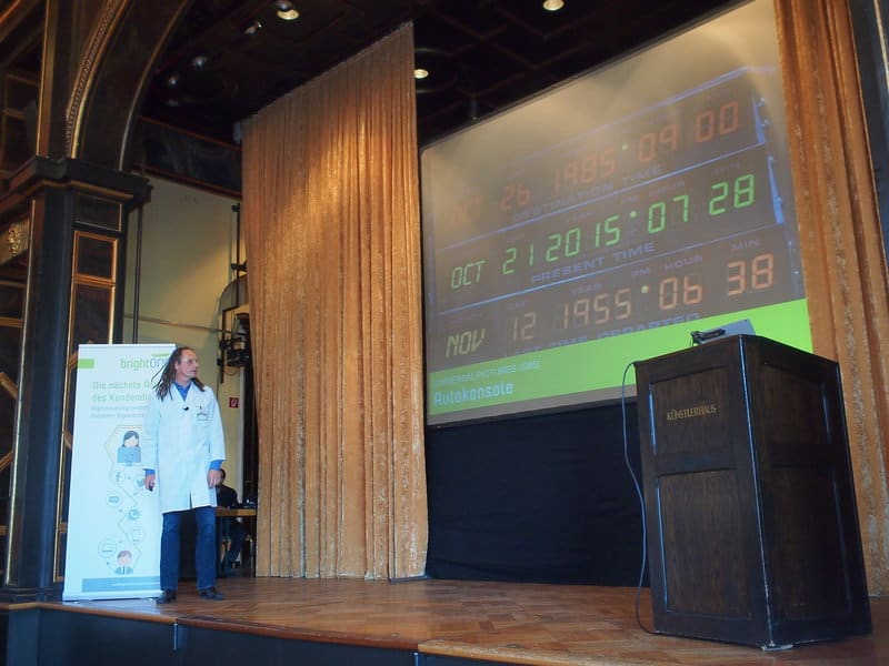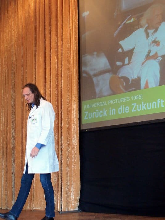 Stefan Holtel blickte mit dem Vortrag „Denken auf Vorrat“ vier Jahre in die Zukunft. Ende 2016 will brightONE ein ehrgeiziges Projekt starten und bis zum Jahr 2020 abschließen: Ein Hilfsmittel bauen, mit dem jedermann bessere Entscheidungen über die eigene Zukunft treffen kann.