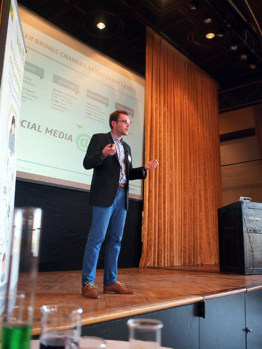 Tino Drews, Senior Digital Solutions Manager bei Telefónica Germany GmbH & Co. OHG, zeigte auf, wie es ihnen gelungen ist, die Brands von Telefónica und E-Plus unter einem Dach zusammenwachsen zu lassen – im sensitiven Feld Social Media. 4500 Anfragen und noch mehr Dialog pro Tag wollen bewältigt werden – und zwar schnell, innerhalb von durchschnittlich 36 Minuten. Laut Statista sei die Hilfe der Marke o2 auf Facebook immerhin die schnellste, schneller als Vodafone und Telekom hilft.