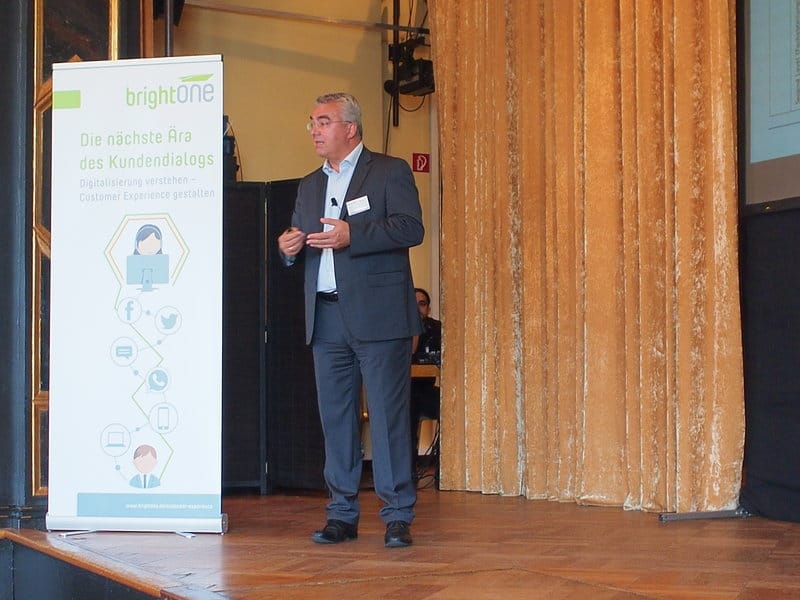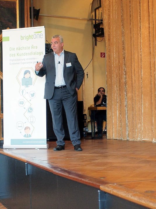 Stefan Grünzner, Geschäftsführer der brightONE Consulting GmbH, schaute von weiter oben auf den Stand und die Zukunft der Customer Experience. Er stellte die Frage, ob wir uns in einer Transformation oder einer R(E)volution befinden oder ob das Ganze nicht doch eher Panikmache sei.